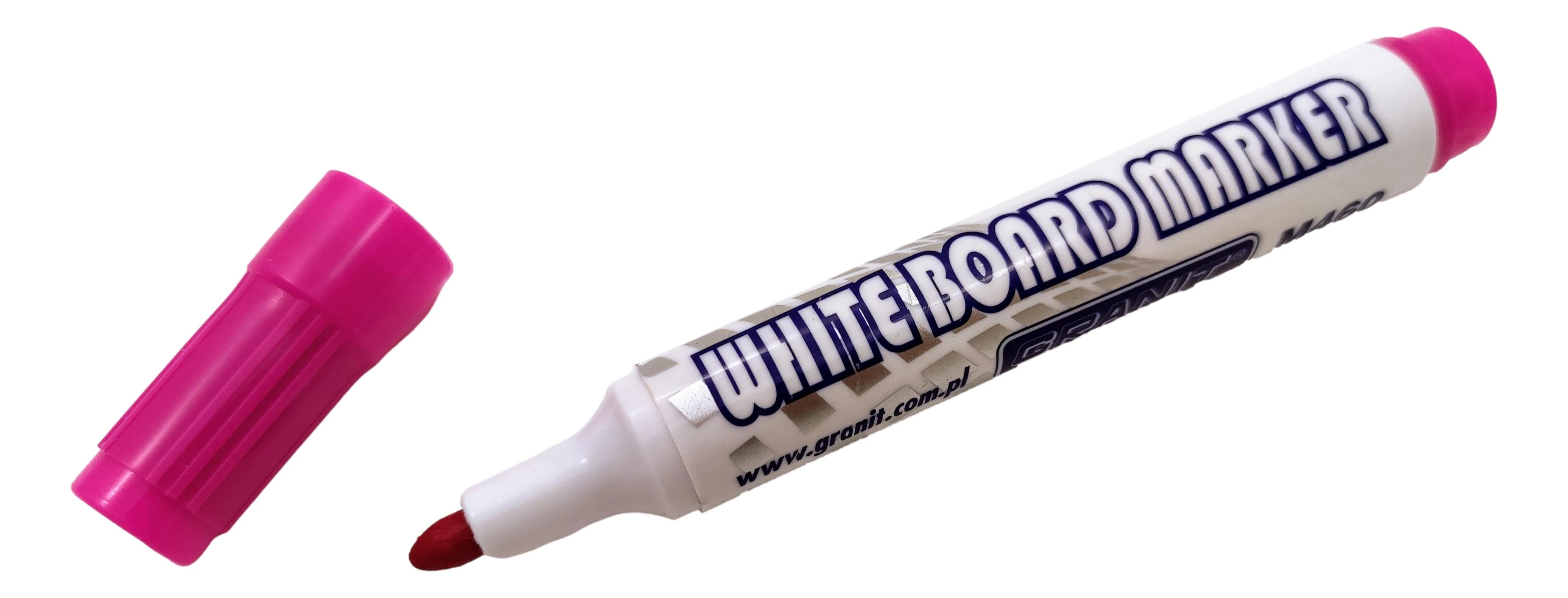 Opis produktu Różowy marker suchościeralny GRANIT WHITEBOARD łatwo usuwalny; stożkowa końcówka; grubość linii pisania: 2-3mm; specjalny atrament do wykonywania napisów ścieralnych z gładkich powierzchni; Zastosowanie: do tablic, planerów i kalendarzy laminowanych z naszej oferty do innych dowolnych tablic suchościeralnych. Sprawdź również podobne produkty: Marker suchościeralny Granit CZARNY Marker suchościeralny Granit ZIELONY Marker suchościeralny Granit NIEBIESKI Marker suchościeralny Granit Czerwony Markery suchościeralne KOMPLET: CZARNY, ZIELONY, NIEBIESKI I CZERWONY Markery suchościeralne 4 szt. + Gąbka Markery do tablic suchościeralnych BIC KIDS CZARNY marker suchościeralny Lumocolor Staedtler CZERWONY marker suchościeralny Lumocolor Staedtler ZIELONY marker suchościeralny Lumocolor Staedtler NIEBIESKI marker suchościeralny Lumocolor Staedtler POMARAŃCZOWY marker suchościeralny Lumocolor Staedtler FIOLETOWY marker suchościeralny Lumocolor Staedtler ŻÓŁTY marker suchościeralny Lumocolor Staedtler BRĄZOWY marker suchościeralny Lumocolor Staedtler Marker suchościeralny Żółty Granit Marker suchościeralny Zielonożółty Granit Marker suchościeralny Pomarańczowy Granit Gąbka do tablic suchościeralnych