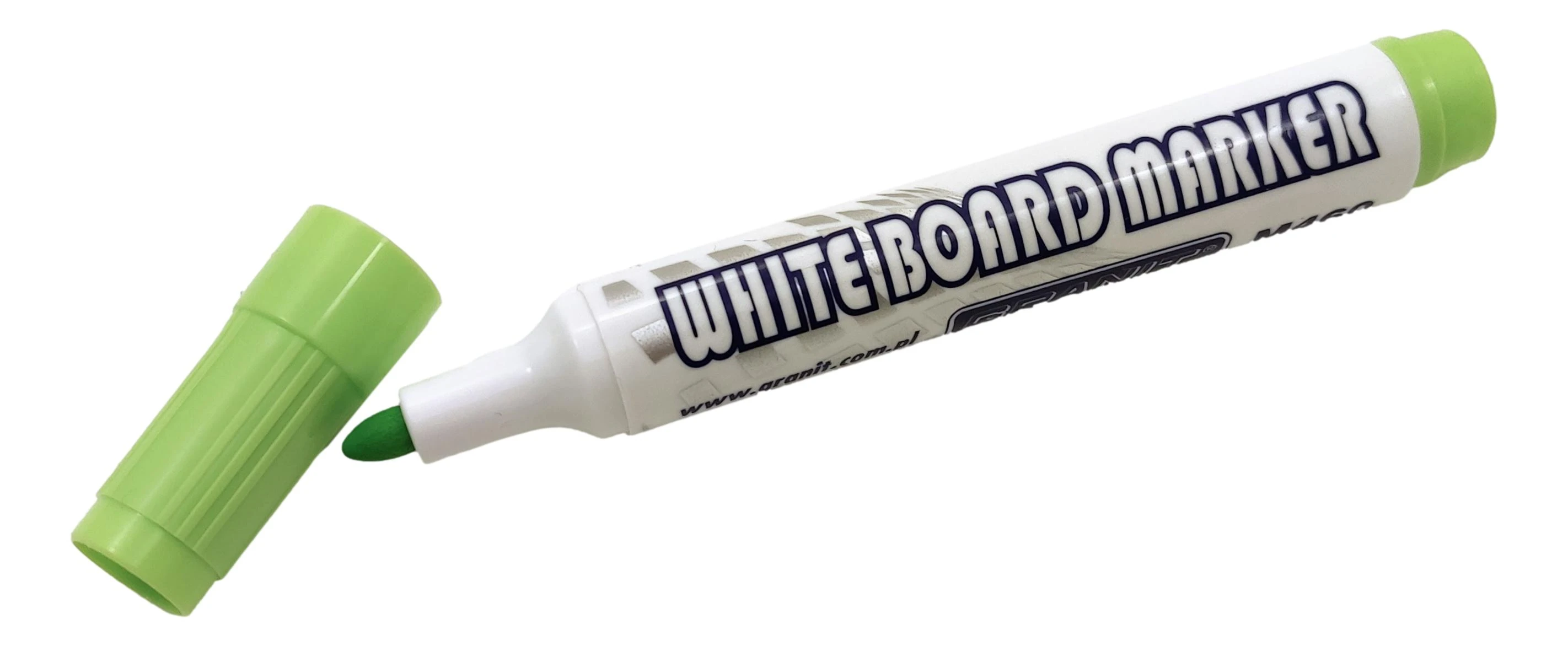 Opis produktu Zielonożółty/ seledynowy marker suchościeralny GRANIT Whiteboard do planerów i tablic łatwo usuwalny; stożkowa końcówka; grubość linii pisania: 2-3mm; specjalny atrament do wykonywania napisów ścieralnych z gładkich powierzchni; Zastosowanie: do tablic, planerów i kalendarzy laminowanych z naszej oferty oraz innych dowolnych tablic suchościeralnych. Sprawdź również podobne produkty: Marker suchościeralny Granit CZARNY Marker suchościeralny Granit ZIELONY Marker suchościeralny Granit NIEBIESKI Marker suchościeralny Granit Czerwony Markery suchościeralne KOMPLET: CZARNY, ZIELONY, NIEBIESKI I CZERWONY Markery suchościeralne 4 szt. + Gąbka Markery do tablic suchościeralnych BIC KIDS CZARNY marker suchościeralny Lumocolor Staedtler CZERWONY marker suchościeralny Lumocolor Staedtler ZIELONY marker suchościeralny Lumocolor Staedtler NIEBIESKI marker suchościeralny Lumocolor Staedtler POMARAŃCZOWY marker suchościeralny Lumocolor Staedtler FIOLETOWY marker suchościeralny Lumocolor Staedtler ŻÓŁTY marker suchościeralny Lumocolor Staedtler BRĄZOWY marker suchościeralny Lumocolor Staedtler Marker suchościeralny Różowy Granit Marker suchościeralny Żółty Granit Marker suchościeralny Pomarańczowy Granit Gąbka do tablic suchościeralnych