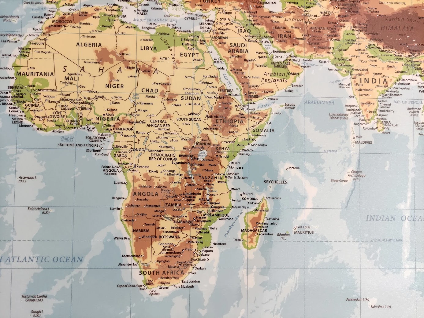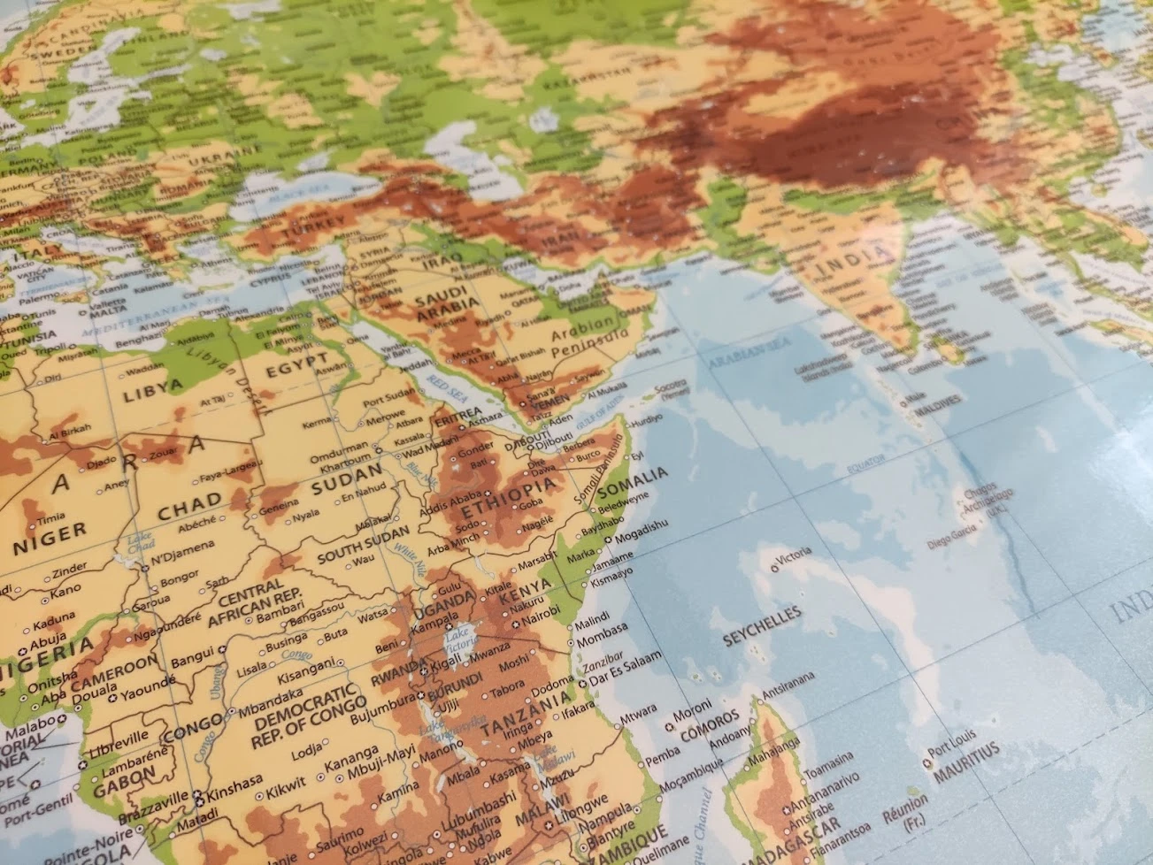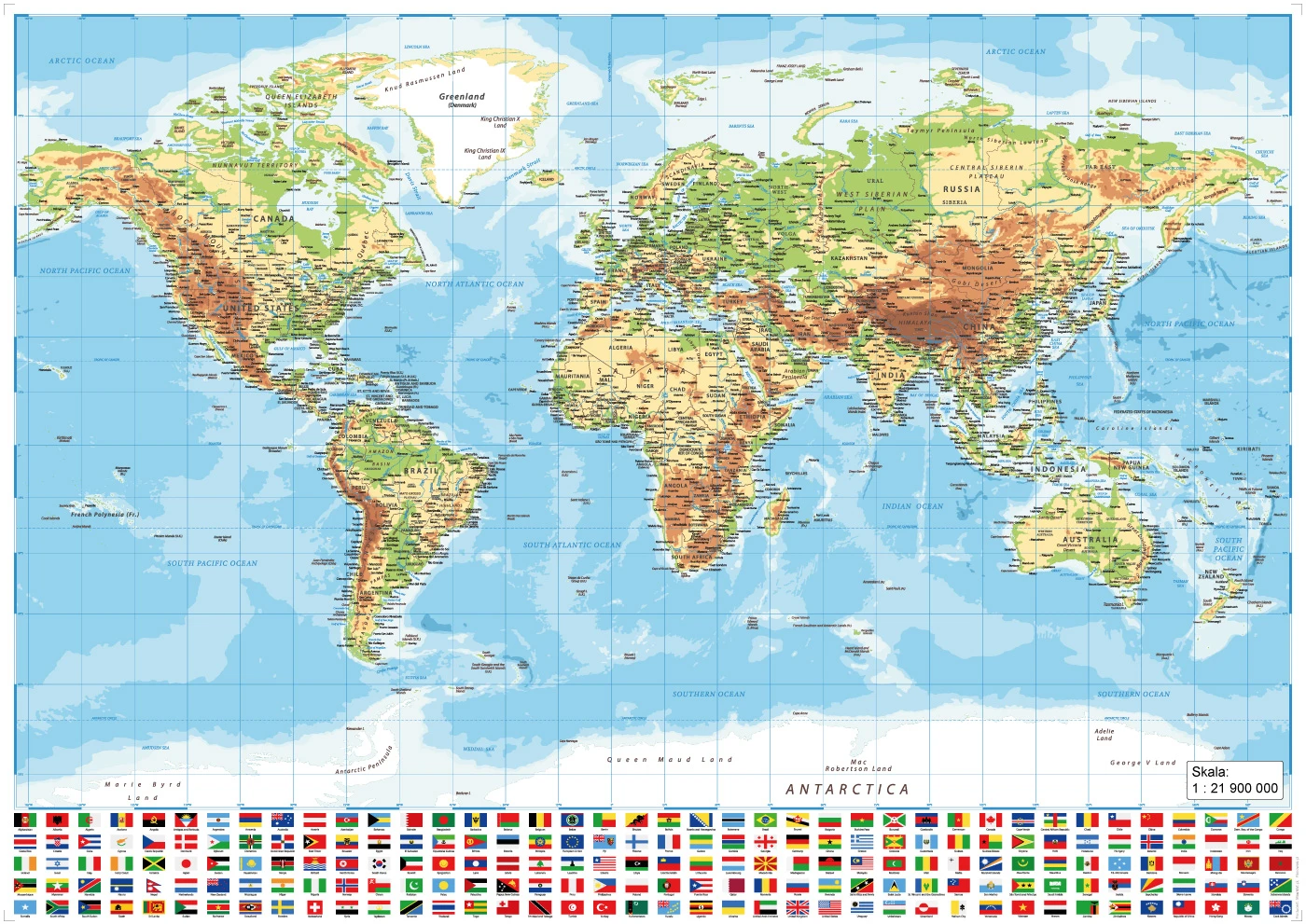 duża mapa fizyczna Świata w skali 1: 21 900 000;
