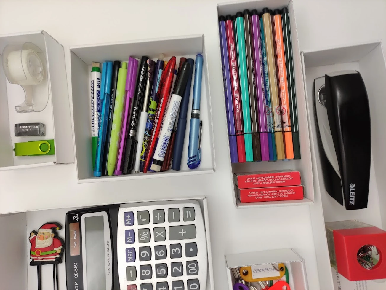pudełeczka przeznaczone do przechowywania rozmaitych drobnych i większych biurowych i domowych przedmiotów