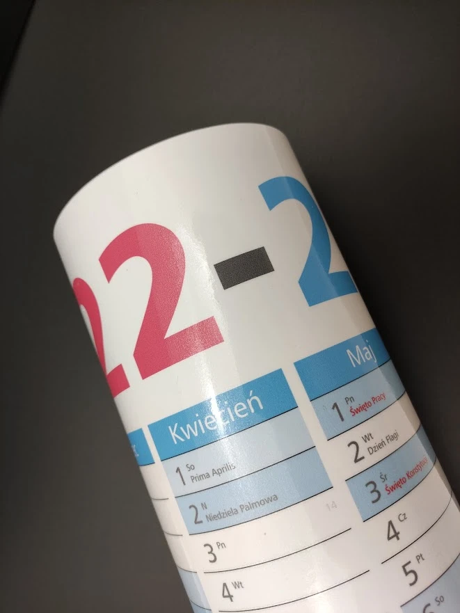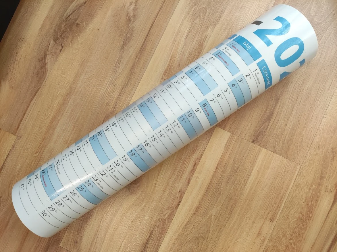 w komplecie dwustronna taśma mocująca terminarz do dowolnej powierzchni.