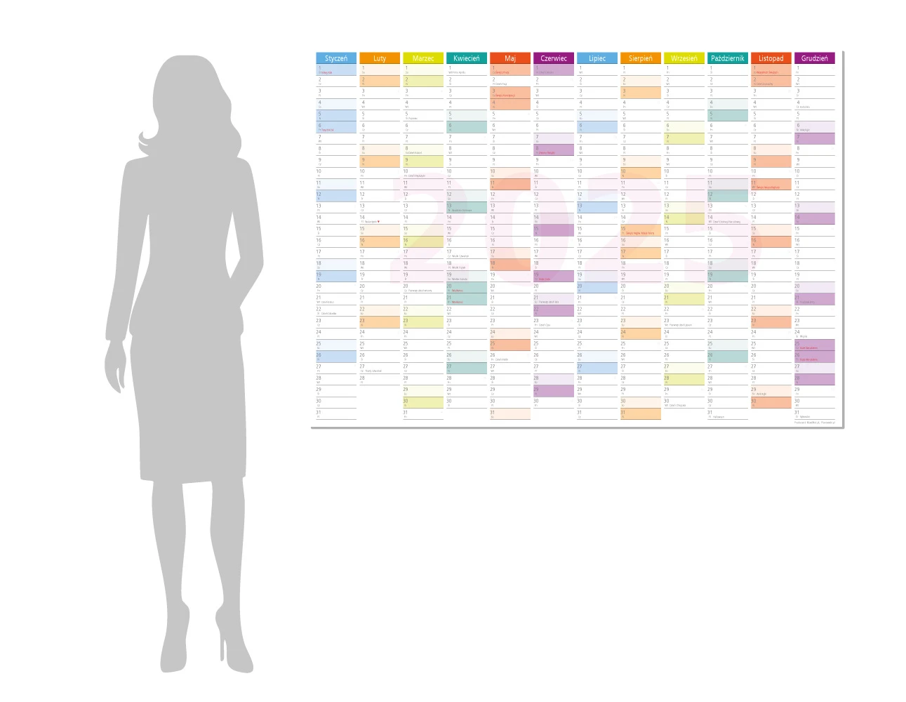 wielkość całego arkusza: szerokość 138 cm, wysokość 97 cm - zobacz miniaturę planera obok postaci kobiety wzrostu 160cm lub sprawdź na swojej ścianie miarką, czy taki właśnie jest Ci potrzebny :),