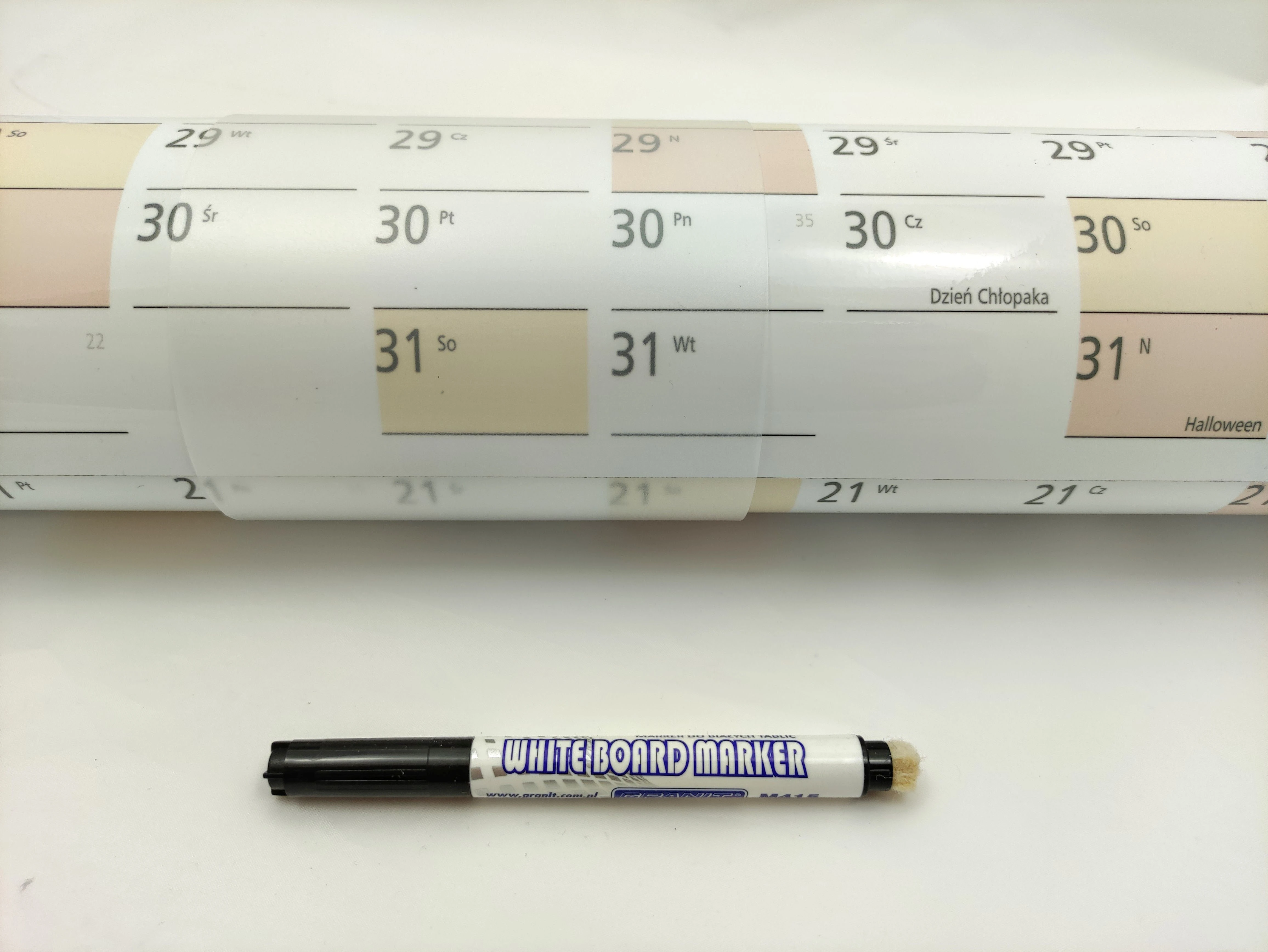 jeśli nie chcesz zmieniać tekstu- możesz pisać na kalendarzu na kalendarzu foliopisem.