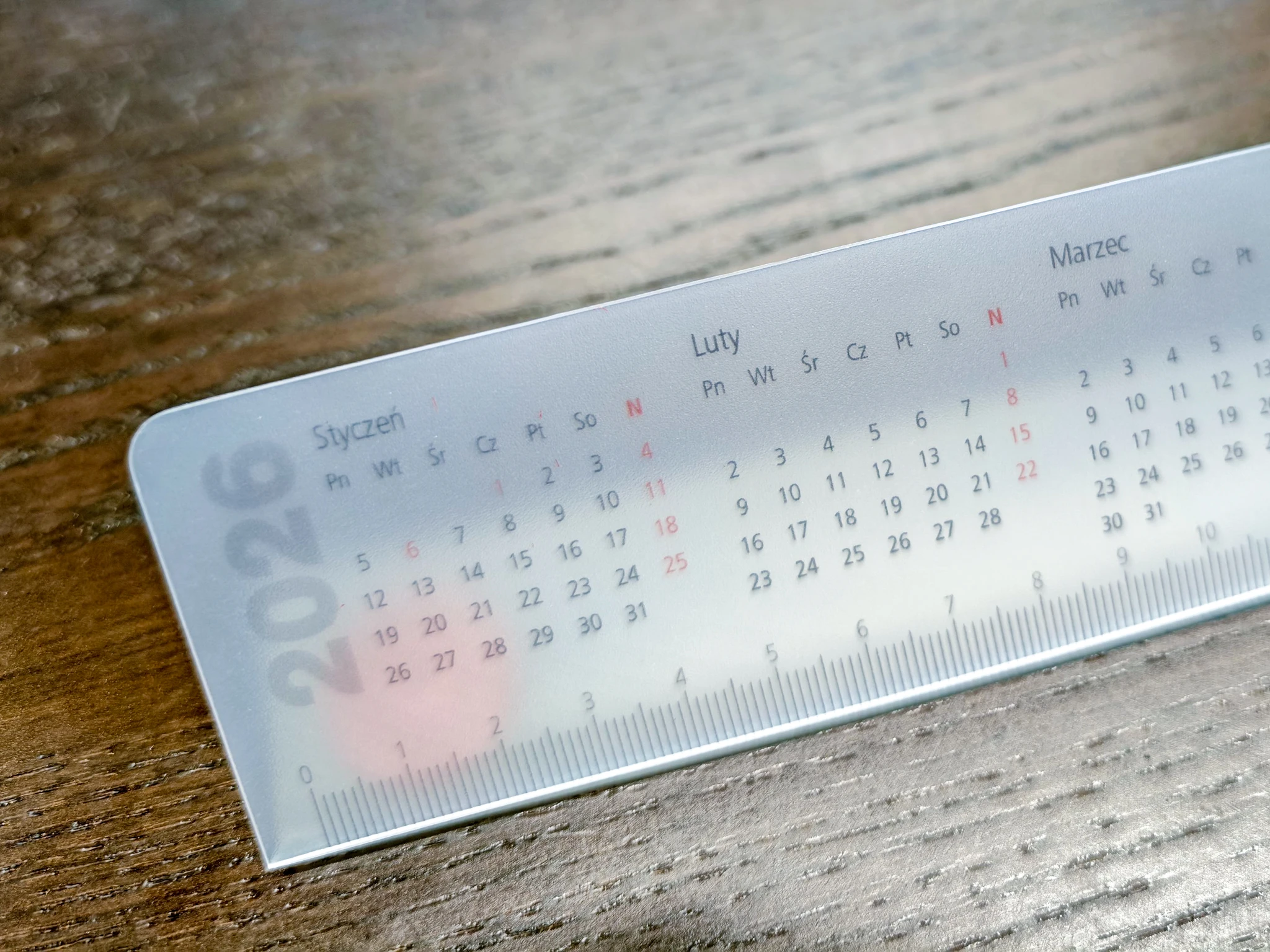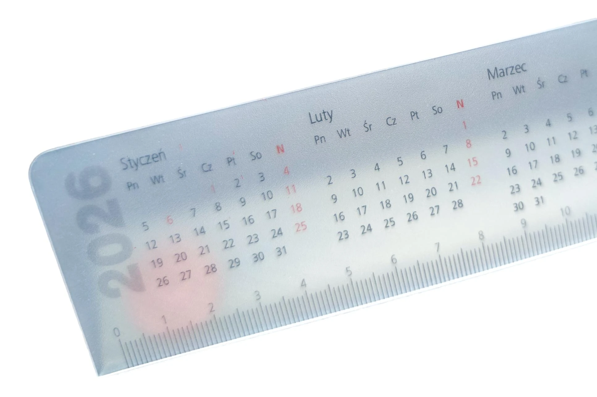 - nadruk skróconego kalendarza na rok 20265 i miarka z milimetrową podziałką.