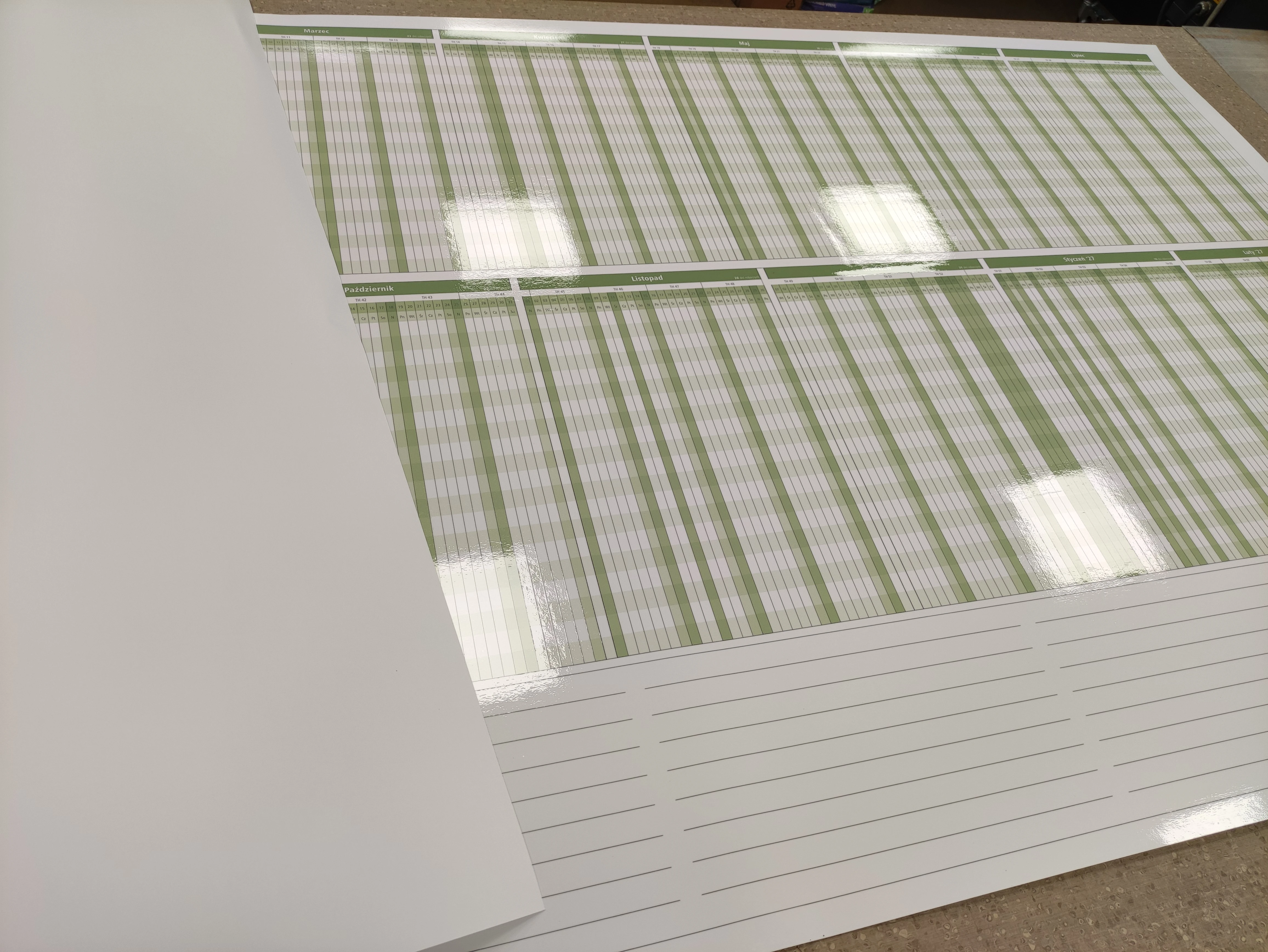 Plan papierowy z laminatem suchościeralnym i samoprzylepnym mocowaniem