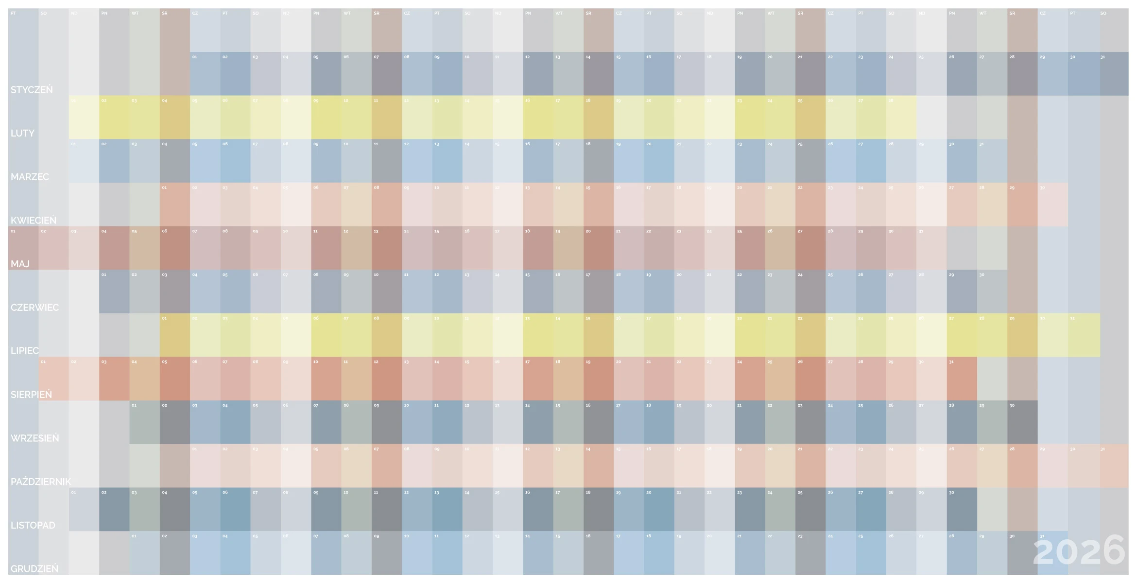 Suchościeralny wielki planer kalendarz na rok 2029 180x91cm