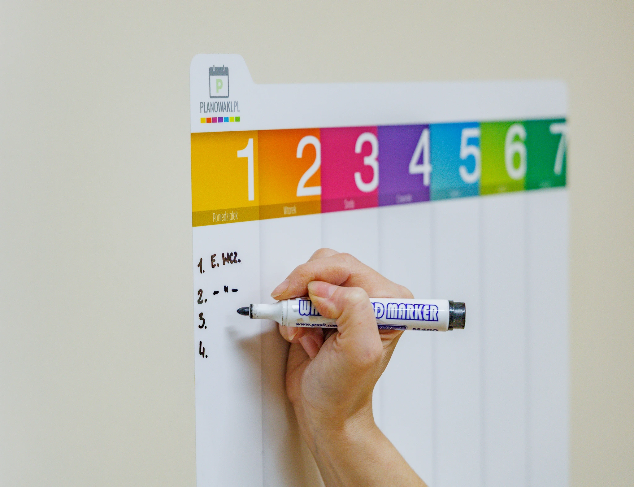 elastyczność zastosowania: Dzięki unikalnej technologii, planer można wielokrotnie przyklejać do różnych powierzchni, co umożliwia swobodne zmienianie lokalizacji w zależności od potrzeb,