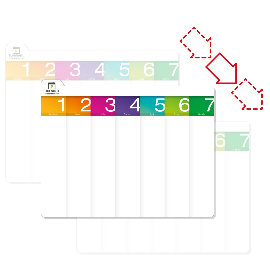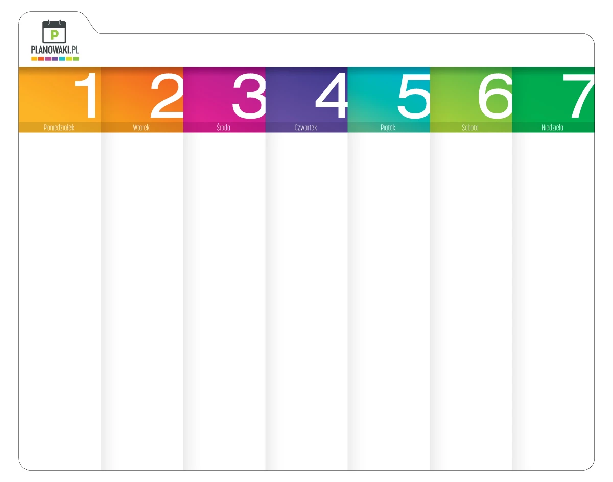 7 dni tygodni z kolorowym nagłówkiem w radosnych kolorach