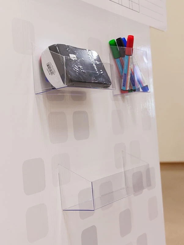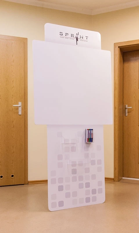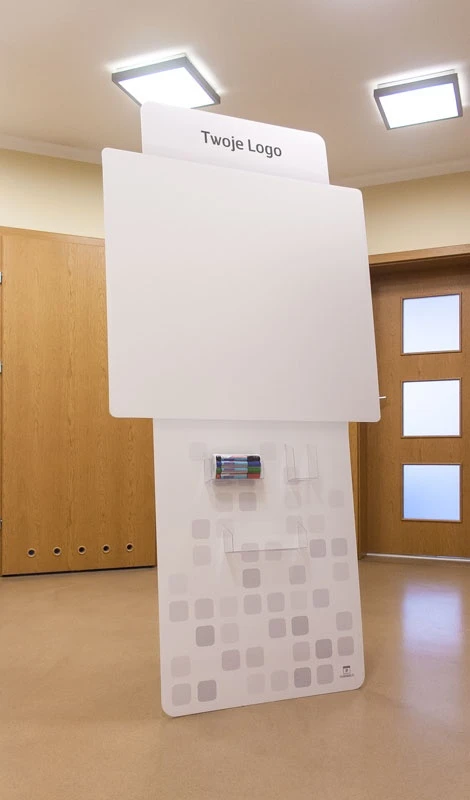 Wymiar białego pola na notatki to 88,5 cm x 97,5 cm, ale UWAGA: można pisać i ścierać na całej frontowej powierzchni stojaka!