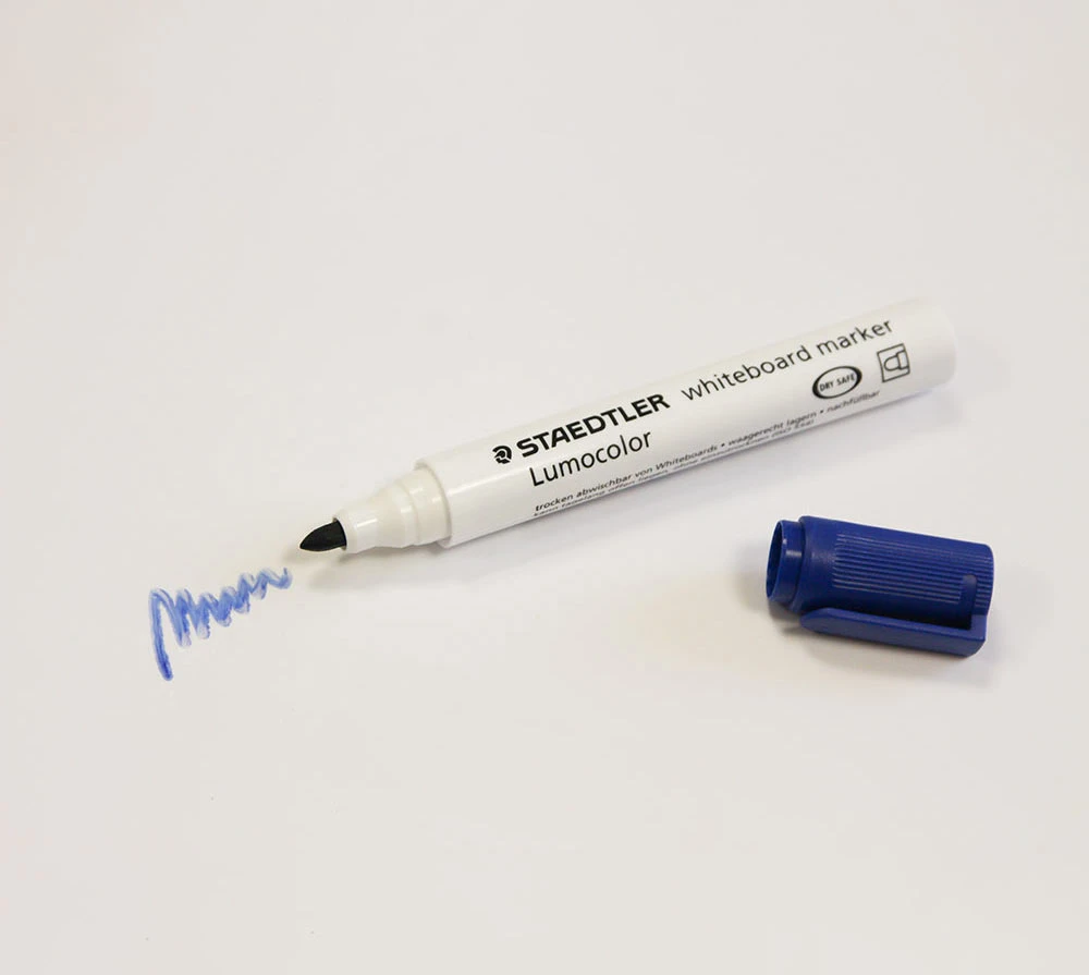 Niebieski marker pisak suchościeralny Lumocolor Whiteboard Staedtler do planerów i białych tablic